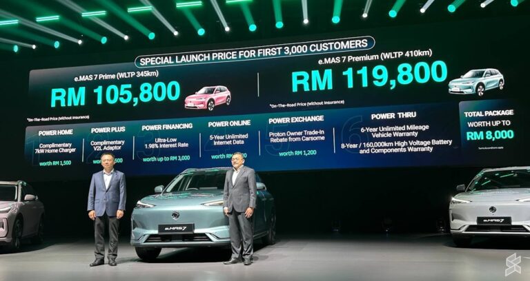 To recap, the Proton e.MAS 7 comes in Prime and Premium variants which are priced at RM109,800 and RM123,800 respectively (Peninsular Malaysia pricing). As announced during the launch, early bird customers can enjoy a RM4,000 rebate and here’s the official pricing with the rebate offer: